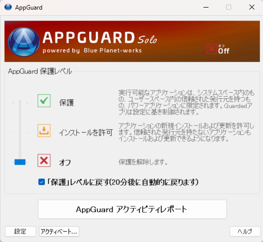保護レベルが非保護状態の場合は、普通にアンインストールで削除します。