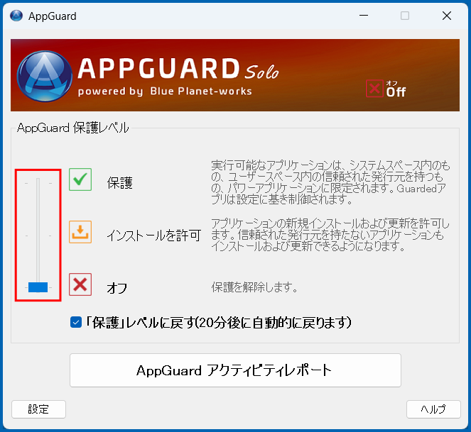 ※こちらの設定を行った場合、AppGuard Solo/Home Editionのアップデート後に通常のシャットダウンを行っても問題は発生しません。